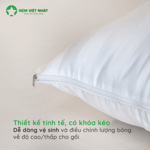 Gối có khóa kéo tiện lợi, người nằm có thể điều chỉnh lượng bông về độ cao/thấp cho gối, mang lại tư thế gối đầu thoải mái và dễ chịu nhất.
