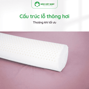 Gối được đúc từ khối cao su hình chữ l, dài 100cm. Mặt gối còn được kết hợp hệ thống lỗ thông hơi dày đặc, thúc đẩy không khí lưu thông liên tục, hạn chế hầm bí và thông thoáng vượt trội.